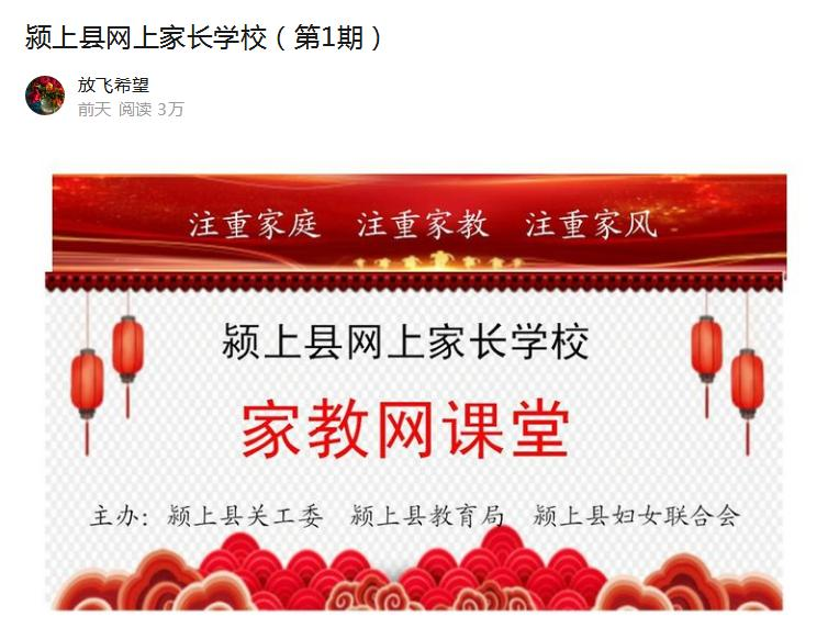 颍上县关工委 马少山 为了更加深入地学习和落实国家主席习近平以“三个注重”为核心的新时代家庭教育思想和《中华人民共和国家庭教育促进法》,积极响应国家关工委提出的五老关爱工程“授渔计划”,推动家校合作共育,促进青少年健康成长,鉴于目前家长学校师资力量不足,以及近年来受疫情防控等因素的影响,以学校为主体的线下开办家长学校困难较大的实际,县关工委联合县教育局和县妇女联合会下发文件,共同主办了覆盖县域的“颍上县网上家长学校”。