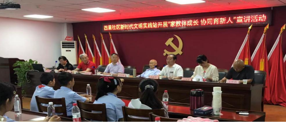 为学习《家庭教育促进法》,传播立德树人家庭教育理念和知识,引导家长强化主体责任,助力家庭、学校、社会协同共育,帮助孩子扣好人生第一粒扣子,聚焦儿童心理健康等家长关心的问题,2023年5月20日上午9点,四里社区进行“家教伴成长 协同育新人”家风家教宣讲活动,特邀请阜阳市关工委家教讲师团秘书长、阜阳职业技术学院家教专家张乐群教授、阜阳爱心公益志愿者协会李文标会长及颍西办事处关工委主任周永红为家长解疑释惑、提供指导。此次活动由四里社区新时代文明实践站、四里社区妇联、四里社区关工委共同举办,颍西办事处退体干部、四里社区五老调事调解员张振和主持会议,四里社区工作人员及南京路三小部分学生、老师和家长参与听课。